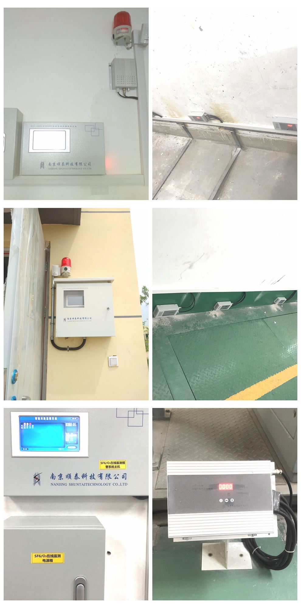室內(nèi)SF6氣體、氧氣在線監(jiān)測報警系統(tǒng),是針對變電站室內(nèi)SF6組合電器設(shè)備SF6絕緣氣體泄漏的在線式監(jiān)測報警系統(tǒng),主要應(yīng)用在變電站內(nèi)35kV SF6開關(guān)室,500kV、220kV、110kV GIS室,SF6實驗室儲存室以及其他安裝SF6設(shè)備的室內(nèi)環(huán)境的綜合監(jiān)測。對環(huán)境中SF6氣體泄漏情況和空氣中含氧量進(jìn)行實時監(jiān)測。本系統(tǒng)采用新型高靈敏度傳感器,自有的紅外激光技術(shù)。當(dāng)室內(nèi)SF6及O2的濃度發(fā)生微小變化時,傳感器立即能響應(yīng)這一變化,經(jīng)單片機(jī)處理將信號傳之控制器??刂破鲗?shù)據(jù)處理、存儲、彩色顯示、報警、風(fēng)機(jī),除濕,調(diào)溫控制,并將結(jié)果傳送到遠(yuǎn)程計算機(jī)。