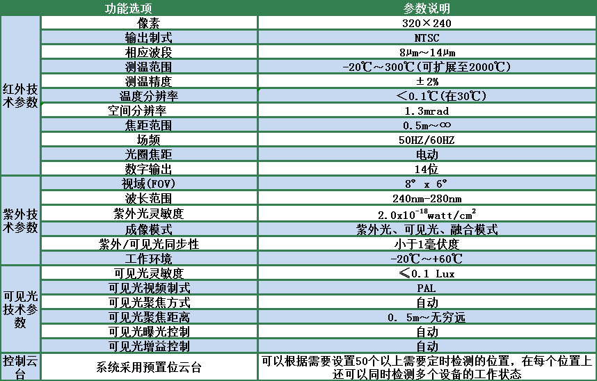 3、遠程控制:實現(xiàn)對變電站區(qū)域內(nèi)場景情況的遠程溫度分析,遠程電暈強度分析,遠程監(jiān)視;