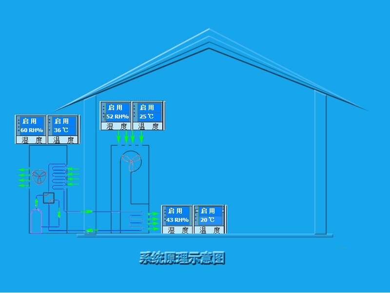根據(jù)以上分析,上述各方法在預(yù)防凝露的同時都帶有難以克服的問題。建議對整個房間內(nèi)部進行整體除濕,從根本上解決電力設(shè)備內(nèi)部的潮濕問題,大大延緩電力設(shè)備銹蝕進程,增加設(shè)備可靠性,延長運行壽命。